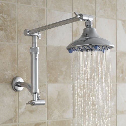 The Rain Shower Up Filter FXD-CM-P6 by Sprite Industries uses a unique filter to pH balance your tap water while eliminating contaminants and harmful chlorine vapors. The Rain-Shower Filter's patented filtration system offers multiple health benefits while leaving your hair and skin silky smooth. Rain-Shower has a 20" double extension arm, a 6" head for a spa-like waterfall experience, five spray settings and locking hinged joints to custom-adjust the height. Chrome-plated brass. Filter cartridge lasts 3 months or 10,000 gallons. Replacement filters are available, please see replated products below.